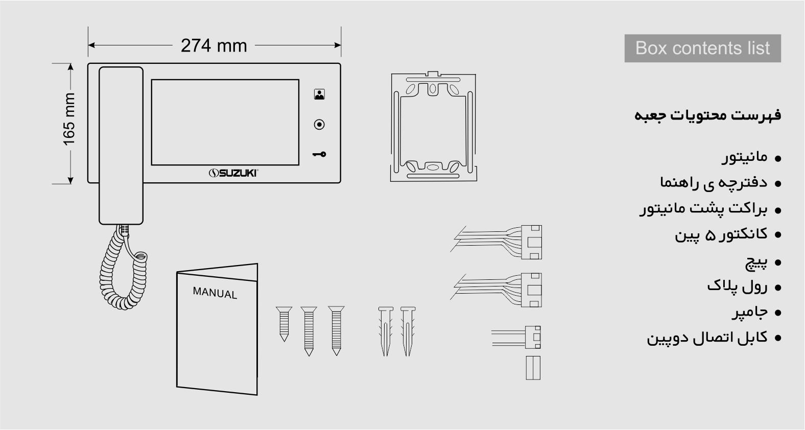 آیفون تصویری سوزوکی 730IM دارای ویژگیهای پیشرفتهای همچون اتصال به دو پنل و امکان سوئیچ کردن بین آنها، ورودی برای دوربین مداربسته و حتی خروجی برای اتصال به گارد نگهبانی است. با این همه امکانات، آیفون تصویری سوزوکی 730IM با قیمت مناسب خود، یک گزینه مناسب برای کسانی است که به دنبال یک آیفون تصویری با کیفیت و امکانات متنوع هستند