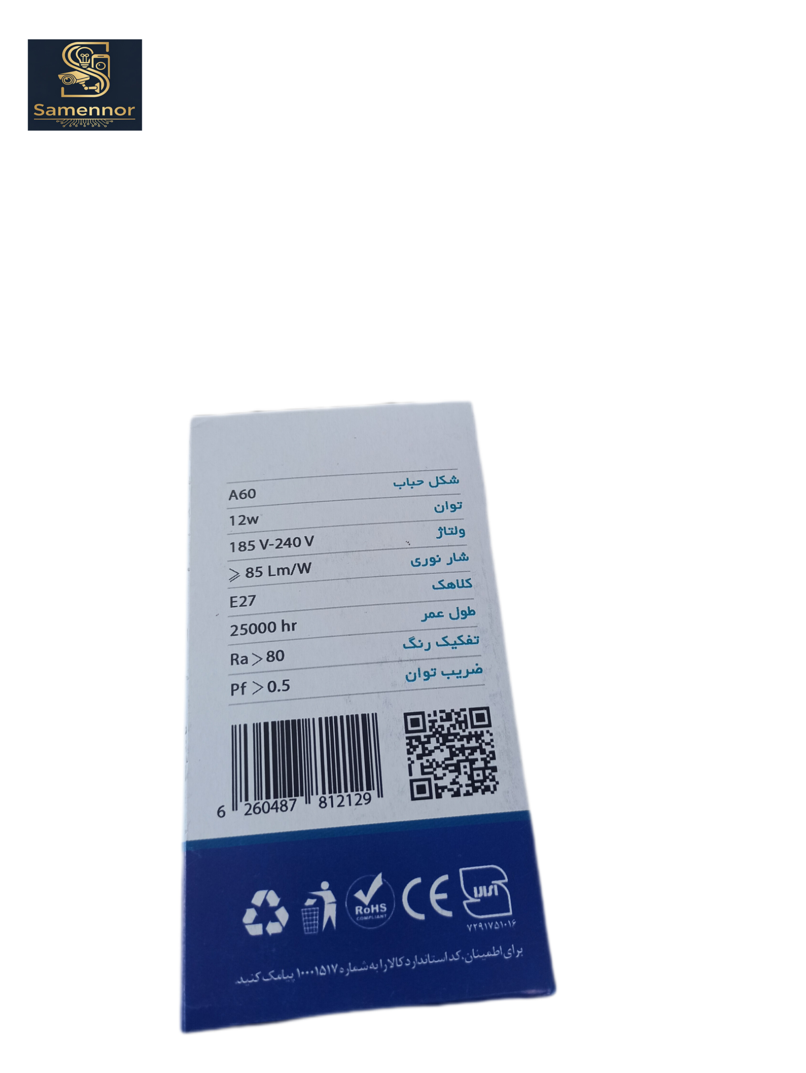 لامپ LED حبابی ۱۲ وات مهتابی ماهک